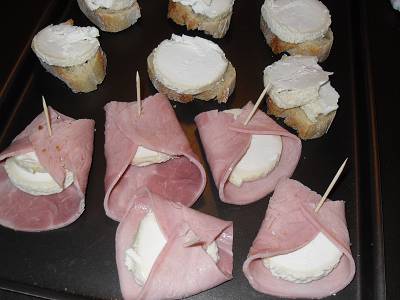 J' adore les salades de chêvre chaud, je cherchais une idée pour partager ce repas avec mes invités mais sans utiliser de pain, même si Sybille ma confirmé qu' il était possible de mettre le chêvre sur du pain montiti. Hier j' ai pris des demies tranches de jambon découanné dégraissé,placer la tranche au centre, et replié avec un cure dent. Aprés un passage au four, un régal sur la salade en menu PL :-) |
