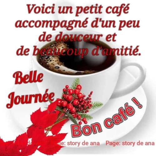 Bonjour Brigitte je prends le petit café avec toi ici aussi beau soleil ce matin un peu brumeux je vais au Drive pour les grosses courses c'est vendredi 17 octobre |