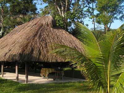 Cet abris est un carbet, on en trouve beaucoup en Guyane, c'est une sorte de maison sans murs ,il y a des sanitaires et des hamacs, beaucoup de personnes qui sont de passage y passent la nuit. |