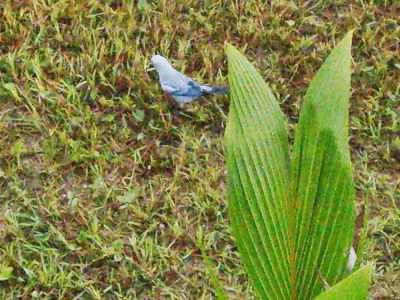 bel oiseau bleu de Guyane venant tout pret des habitations |