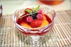 PECHES AU SIROP DE MUSCAT ET FRUITS ROUGES Une recette toute fraîche qui a sauvé du désastre des pèches qui commençaient à tacher. Une petite cueillette de petits fruits du jardin (fraises, framboises, mures) Un reste de Muscat de Rivesaltes au frigo et voilà un dessert délicieux et rafraîchissant. 2 pèches jaunes Un bol de framboises et quelques fruits rouges à votre convenance 20 cl de Muscat 10 cl d’eau 1 c à s de miel d’oranger 1 citron bio 1 c à s de stévia + 2 pour le coulis de framboise Faire un sirop, avec, l’eau, le Muscat, le miel et le stévia, ajouter une gousse de vanille et le zeste d’un demi citron, porter à ébullition et laisser réduire un peu afin d’avoir la consistance sirop. Pocher les pèches dans de l’eau bouillante 1 mn les passer sous l’eau fraîche et le peler. Ouvrir en deux, retirer le noyau. Pocher les demi pèche dans le sirop bouillant environ 6/7 mn. Laisser refroidir dans le sirop, en stoppant l’ébullition (déposer, le récipient dans de l’eau fraîche) Préparer le coulis avec les framboises, réservez en quelques-unes. Porter à ébullition, les framboises, le stévia et une c à s d’eau. Laisser cuire 5 mn et passer au tamis. Réserver. Disposer dans une coupe, deux à trois c à s de coulis, la pêche refroidie, puis les fruits rouges. Saupoudrer légèrement de stevia (un voile)afin de donner un aspect givré. Le top : Une boule de glace vanille !( non non pas de glace mdr) |