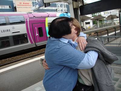 Bonsoir à toutes....je ne suis pas très tôt mais nous avons travaillé pour vous... LYSIE et MOI...Mon arrivée AU MANS....Et la joie de nos retrouvailles...A l'unanimité vous avez réclamé les photos de ces 2 merveilleuses journées....les voilà... |