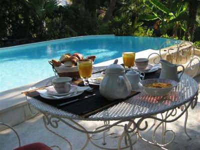 le soleil est au rendez-vous ce matin :) :) , aussi c'est avec grand plaisir que j'ai installé la table au bord de la piscine!!! :P :P :P :P :P |