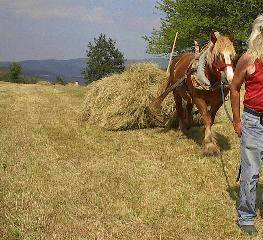 quand j'étais petite fille (c'était hier) j'aimais beaucoup aller chez mes grands-parents, l'été, et j'adorais quand ils faisaient les foins ou la moisson des blés!!! avec mes cousins, on jouait comme des fous dans les meules!!! |