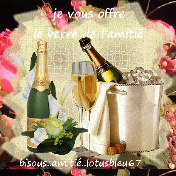 Désolée LINOU....mais mon 1er message s'étant envolé j'ai dû recommencer...je te remerciais en effet de toutes ces jolies photos , de ces jolies vahinés et de ce séjour paradisiaque que tu nous offrais...te précisant que j'avais beaucoup apprécié...je n'avais plus le temps de tout recommencer car il fallait que je m'occupe du repas ...Mais je sais que c'est contrariant quand on a l'impression de ne pas être lue !!!! Voici l'heure de l'apéro...Je t'offre donc le verre de l'amitié..A la tienne ma LINOU... Bonne soirée à toutes.. :-* |