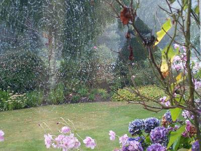 Nous sommes arrivés juste avant la pluie...et au moenet où je vous écris il pleut des cordes....mais les jardins réclamaient et mon mari est ravi !!! |