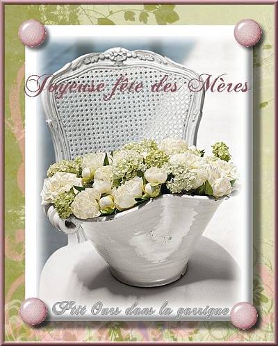 Et à toutes les Maman du "Coin Détente" , une joyeuse fête des mères...Bon dimanche en famille à vous toutes...Bisous à toutes... |
