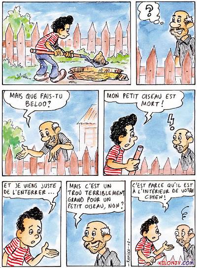 ....NON!....LINOU....C'est pas toi qui était dans le ventre du chien!!.....Et pourquoi qui aurait pu de LINOU?..hein???....Pi toi pas avoir gueule!....mais gentil museau!...Pi....Ben....j'ai mis un drapeau blanc...TU as mis un drapeau blanc....Tournons la page....si tu veux bien....Bronze bien....mais attention...pas PEAU-ROUGE chez nous!...Sont dans leurs réserves!... |