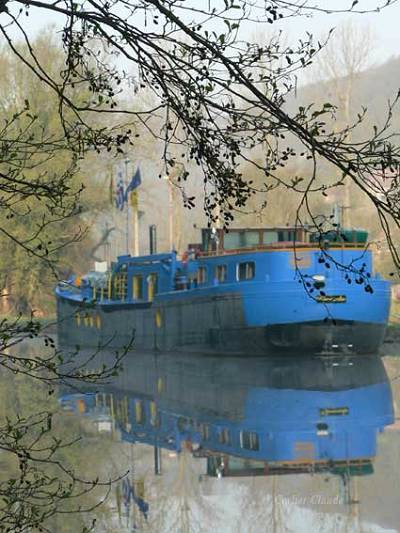 j'ai repeint ma péniche en bleu pour aller voir mes petits neveux qui habitent rue du Canal ! |