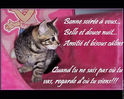 Et zut ces messages qui s'envolent !!!! j'avais pourtant mis un long texte !!!! je recommence... Je vous disais bonjour bien sûr...et que je n'étais pas de bonne heure ce matin...des paperasses toujours et des coups de fil à donner...donc pas le temps de sortir mes bâtons...de toute façon il fait gris... On casse chez LINOU et J.M !! vous faites vous-mêmes ou vous faites faire? Nous aimerions nous aussi donner un p'tit coup de relookink à notre salle de bain , mais mon mari ne peut plus entreprendre de gros travaux....Donc ça attendra les autres priorités !!! A moins de gagner au loto !!!! Et en attendant le soleil qui va sûrement arriver...et oui je suis devenue optimiste , moi , la bileuse...j'ai changé..peut-être grâce à vous...sûrement d'ailleurs grâce à vous toutes.... Donc en attendant le soleil je vous souhaite un bon mercredi...Bisouuuuus Ce midi ce sera cruditée..poisson et riz....fruits et café...A plus |