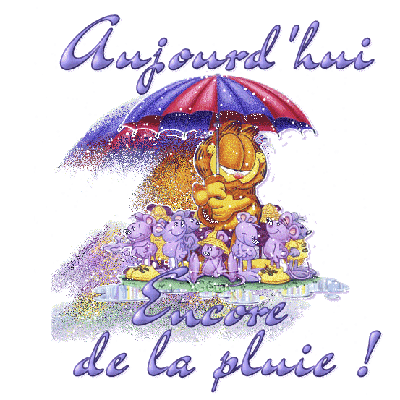 Bonjour . ET ÇÀ CONTINU !!!!!!!!!!! Il va falloir sortir les bottes , car là , çà" gadouille "pas mal !!!!!!! Ne parlons pas des choses qui fâchent .!!!!!!! Nickie , pour le ciné si tu peux vas y , c'est un super moment , je n'avais pas vu la pièce , qui a eu un grand succès .Bonne journée familiale . Vu ce temps printanier , aujourd'hui , c'est jarret de porc aux lentilles . Passez un très bon WE. , allumez vos cheminées , chaussez vos charentaises , et avec un bon bouquin , la journée sera quand même agréable .` A ce soir peut-être . Bisous . Jeanne |