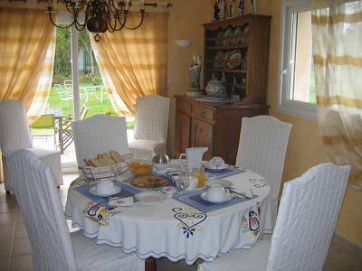 J'aurais aimé vous servir le petit déjeuner à l'extérieur, mais vu le temps, il est plus sage de rester à l'intérieur!! Il ne pleut pas, ni ne vente, mais le ciel a pris son habit des jours moroses !!!! |