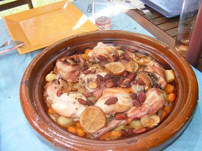 Tajine de lapin aux citrons confits, et puis creme au citron ce soir, Bouillon de légumes, jambon blanc, fromage blanc, Bon appétit |