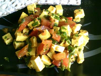 Menu du chef ce mercredi Midi! Salade de tofus, tomates aux herbes, |