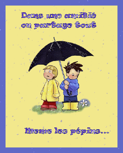 Tu vois jeanne, j'ai sorti mon n ouveau parapluie, il est plus gai!! je le partage avec vous!! |