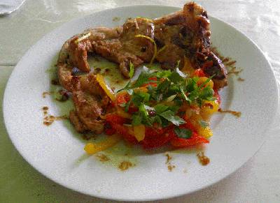 Bonjour tout le monde, Ben je vais aussi vous mettre mon repas de midi ce sera des côtes de veaux aux deux poivrons. Pour 4 personnes 2 poivrons verts, orange, ou rouge et orange - 5 càs H.O. 6 tomates bien mûres - 3 gs d'ail - 3 échalottes - 1 verre de vin rouge genre corbière ou côte du rhone - 1cac de piment doux - 4 côtes de veau de 200gr - 3 brins de persil -2 citrons - sel et poivre. Sa sent bon!!!!!!!! Repas PL bien sûr;-) Dessert - Flan aux pêches SOIR GP - Potage de légumes - une compte ssa - Bon appétit les filles;-) |