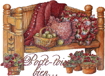 bonjour les filles,j'ai été absente depuis 3 jours , mes vertiges ont recommencé, et cette fois c'était une sacrée crise. Retour donc chez mon specialiste , qui m'a fait une séance de manipulations très complète , et je vous assure que j'ai été très malade maux de coeur, tournis pendant3 jours;Il y a dix ans que je souffre de ces vertiges , mais je n'ai jamais eu une crise aussi forte . Enfin ce matin, bien que très fatiguée , çà va mieux. J'ai un peu honte de me plaindre, en pensant à ta peine Linou, le chagrin de perdre un être cher, est insupportable , je suis de tout coeur avec toi , et je te demande de m'excuser de ne pas t'avoir répondu Vendredi , j'étais incapable même de parler , je revenais de chez mon toubib.et ne tenais pas debout. Toutes mes pensées pour toi et la famille de ton amie. Beau soleil aujourd'hui , obscurci quand même par les ennuis de certaines A ce soir . Bises à toutes, avec un supplément pour notre Roselyne. . |