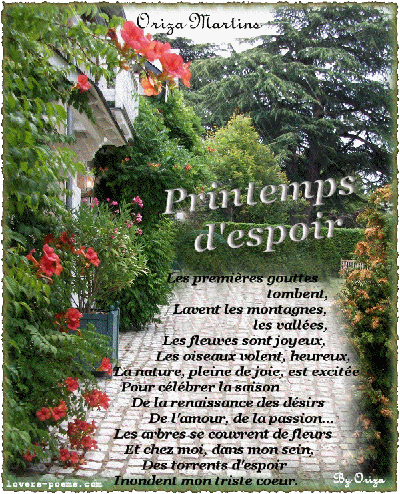 et oui le printemps est là! l'hiver est derrière nous, regardons devant, les beaux jours arrivent à grands pas et les vacances ne sont pas loin pour celles qui bossent!!! B-) B-) :-q :-q |