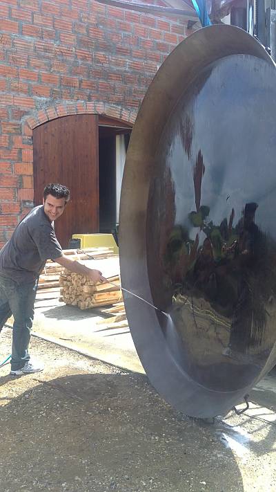 Bonjour; Le soleil hésite et joue à cache-cache, nous marcherons peut-être cet aprem. car pour l'instant c'est vraiment trop mouillé dans les vignes. Je vous envoie "ma poêle"" diamètre 2m,50 , et c'est avec des pagaïes que l'on remue les 5200 oeufs , 40 KG. de lardons 40 KG. d'aillet , 40L. de lait. :P Bonne journée mes amies , a ++ |