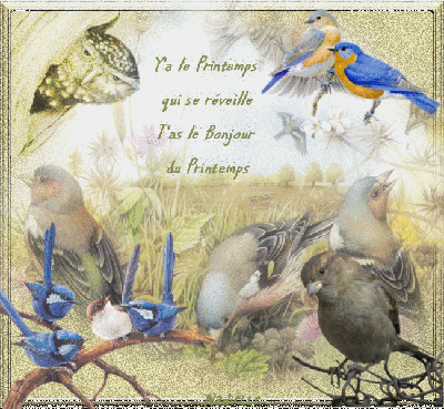 Vous voyez les petits oiseaux sont aussi de la fête, quels gazouillis de mélodies ils nous font le matin, c'est avec un grand plaisir que je les écoute!!!! |