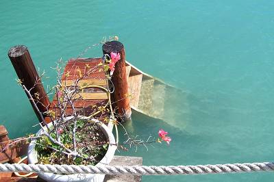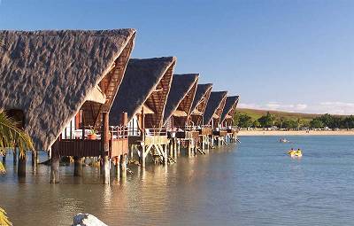 Notre petit sirène des iles va se réveiller, elle nous a réservé des bungalows pour nos vacances, les pieds dans l'eau!!! |