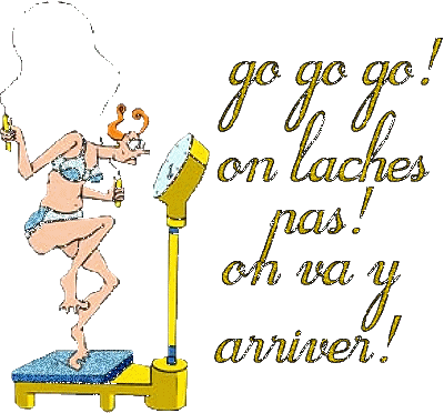 BONJOUR LES BELLES !! ENFIN JE TROUVE UN MOMENT POUR VENIR VOUS FAIRE UN COUCOU. Ce matin 1h30 de marche cet aprem jardin , surtout le nettoyage car après toutes ces gelées.......... mais je suis déçue , car malgré tous ces exercices je ne perds presque rien . Pourtant je suis sérieuse. Je n'ai pris que 3 mois d'abonnement qui se termine le 18/03 , et je ne crois pas que je vais prolonger , car je suis déçue du résultat à peine 2KG de moins. C'est dommage que nous ne sommes pas toutes dans le même coin , car nous aurions pu faire une joyeuse bande de ""marcheuses "" Notre Nicole va arrêter aussi de venir sur son forum, c'est dommage . je pense que l'on se verra quand même de temps en temps. A demain les cops' , plein de gros becs. |
