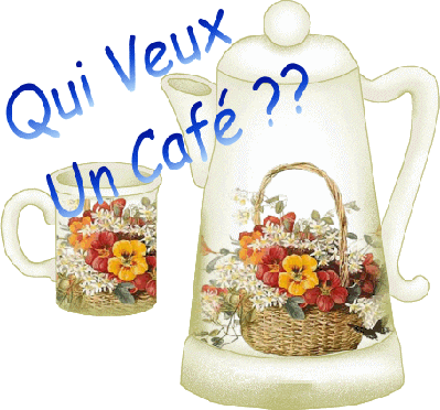 Je ne sais pas si vous le méritez, X( X( car il n'y avait pas grand monde ce matin à la séance sport!!!! :^> :^> :^> mais bon comme je suis la pâte des femmes!!!! ;) ;) j'ai bien réfléchi!!!! pas beaucoup le mérite :-O :-O :-bd :-bd Voilà le café!!! |