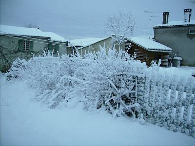 Bonjour les nanas. me revoilou !!!!!circulation très compliquée ce WE. A paris il a neigé 3 fois plus qu'ici , enfin nous revoilaz à la maison , mais nous avons du laisser la voiture en bac de la ccccccccccccôtequi mène à la mison , car notre mairie est toujours aussi peu efficace , à les voitures sont bloquées pour tous les habitants ; On verra demain .UNe grande pensée pour notre Lysie. Je vous raconterai demain , mais ce soir au lit , car on est crevés. Bises à vous toutes . Bonne et douce nuit , faites de beaux rêves. Jeanne. Cette fois c'est vraiment comme çà dans mon jardin |