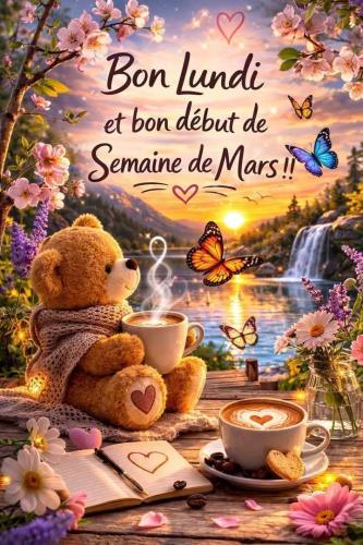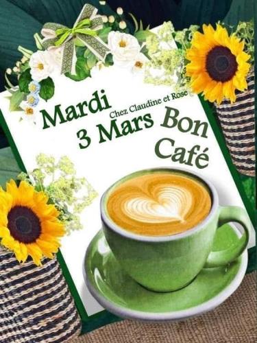 Bonjour Brigitte je prends le petit café avec toi ici beau soleil c'est lundi 2 mars |