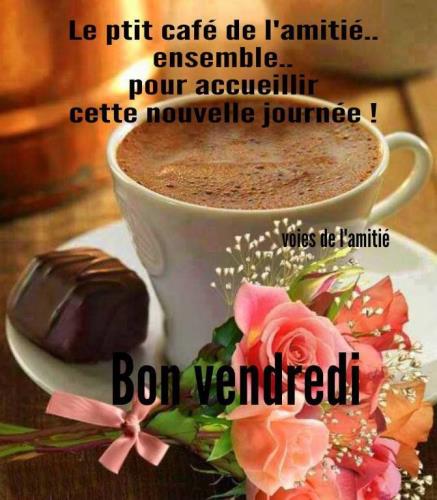 Bonjour Charlotte Le petit café est servi Temps moyen ciel un peu gris avec du vent Ce soir anniversaire les 40 ans d un ami Bon samedi @+ |