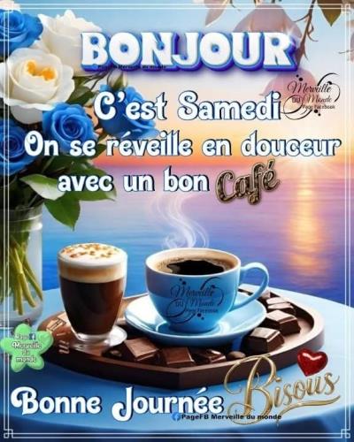 Bonjour Charlotte Je sert le petit café bien chaud Temps clair il fait 5 degrés Bon mercredi Je vais faire du rangement dans le garage @+ |