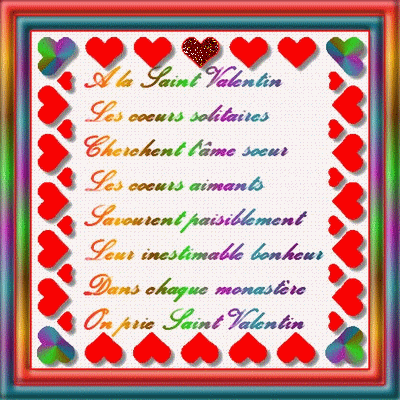 Saint valentin, fête des amoureux, quand on aime n’est ce pas tous les jours la fête ? La fièvre du samedi soir fait délirer les amoureux qui se bécotent sur les bancs publics. Amour toujours sous la pluie de coups sourd. Aimer ce n’est pas se regarder l’un l’autre c’est regarder dans la même direction, encore faut-il ne pas loucher. Ne pas confondre amour et mariage, l’amour existe hors mariage et le mariage semble le faire disparaître, sinon pourquoi l’augmentation des divorces ? Je n’ai pas épousé mon père, aurais-tu épousé ta mère ? Se marier c’est grandir ensemble, les gamins aiment se bagarrer, songez-y avant de signer Une épouse n’est pas une domestique bien que la domestique puisse être une épouse Pour vivre heureux vivons cachés, pourtant le mariage doit être célébré portes ouvertes après publication des bancs. Ferme donc les volets Comment reconnaître que c’était une erreur : se marier. Un chaud lapin et une frigide donnent ils des enfants tièdes ? Un bouquet pour gage d’amour, le bouquet flétri, l’amour est-il mort ? Pour connaître le poids d’un mariage un pèse personne est aussi bien utile qu’une alliance. Pourquoi les hommes enlèvent-ils leur alliance, ne sont-ils pas le sexe fort ? Dans les cadeaux reçus il y avait un canif, faut-il pour autant l’utiliser ? idem pour le rouleau à pâtisserie. Un diamant est éternel mais c’est la seule chose qui raye tout. Si dans tout mariage il faut de la diplomatie, les diplomates sont-ils tous mariés ? On sa |