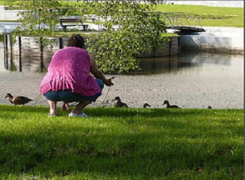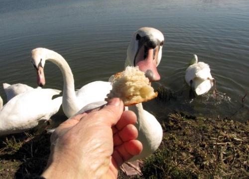 ...et elle n'a pas oublié les cygnes, qui eux ont eu droit à de la brioche ! |