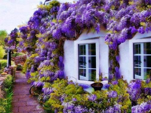 La glycine fleurit partout, ça commence à l'entrée... |