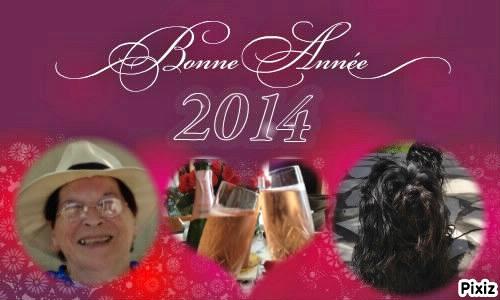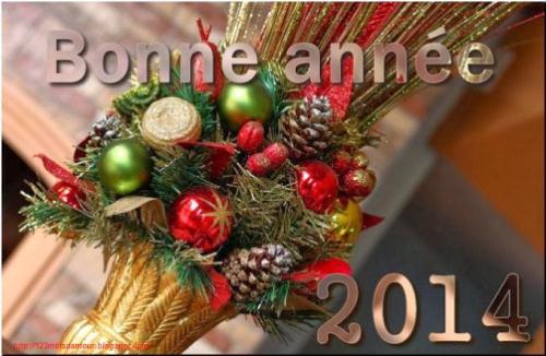 Bonjour mes amies...ben ma ZAZOUILLE tu es tombée du lit ? C'est vrai qu'aujourd'hui sera une journée un peu bousculée...Merci ma NICKIE pour tes voeux. A vous toutes je vous souhaite une année merceilleuse, remplie de joie, de bonheur et surtout de bonne santé, qu'elle réalise tout ou partie de vos désirs et par dessus tout, que nos liens d'amitié restent indéfectibles, je vous souhaite donc une très BONNE ANNEE 2014. |