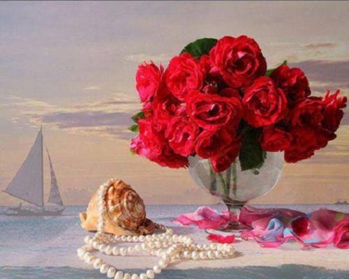 quelques roses rouges sur un fond de vacances à la mer ! |