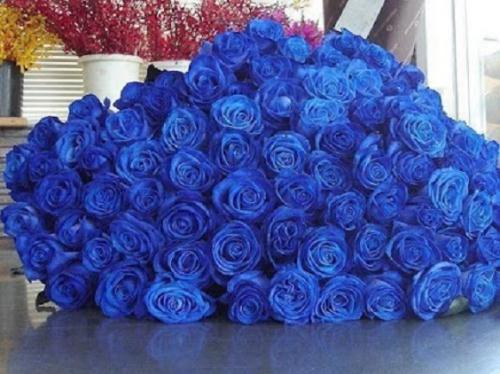 Je n'ai pas regardé à la dépense...une belle brassée de roses bleues...vous n'aurez plus qu'à trouver le vase adéquate pour les mettre dedans ! |