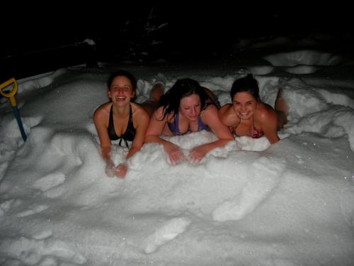 Ben, quand on aura bu tout ça, on sera tellement réchauffées qu'on pourra se rouler dans la neige |