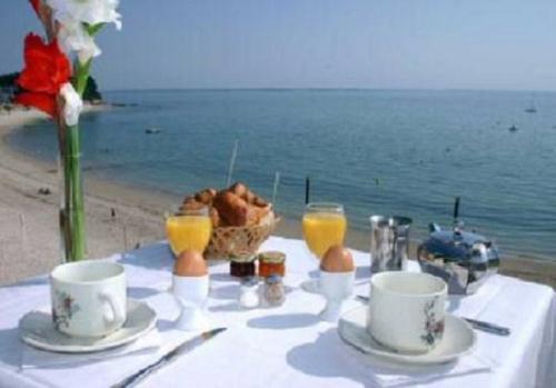 Comme il fait beau en Bretagne sud, le petit déj. sera servi là-bas en bordure de la mer...y'a pas de raison qu'on ne profite pas du soleil nous aussi ! |