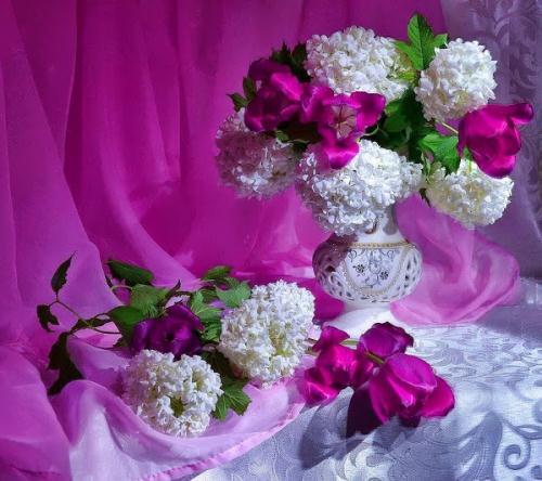 Y'a longtemps que je n'avais pas fait de bouquet de lilas...en voilà du blanc agrémenté de tulipes fuchsia ! |