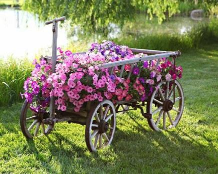 ...avec passage par la pelouse où une charrette remplie de fleurs nous accueille ! |
