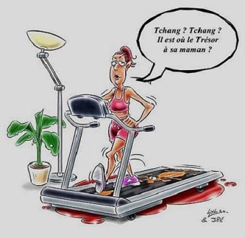 Ben moi le sport NATHIE c'est plutôt le matin...et ce matin c'était tapis de marche...l est arrivé un petit problème, lancée je n'avais pas vu mon ti Tchang ! |